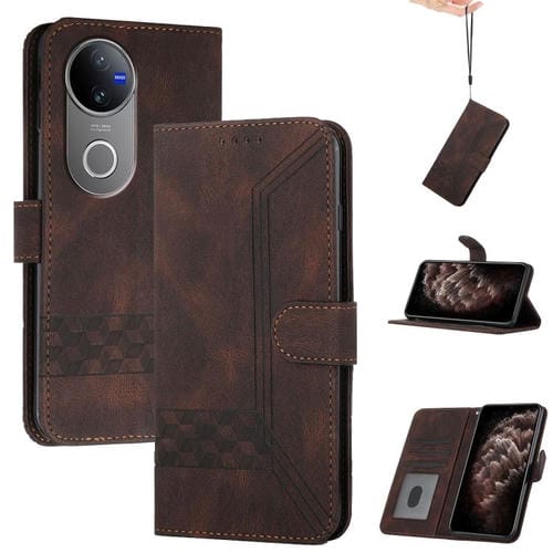 Funda de Cuero con Tapa Cúbica para Vivo V50 (Marrón)
