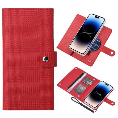 Funda de Cuero con Tapa Magnética Rfid Magsafe Serie Vili Ghb-C para iPhone 14 Pro (Roja)