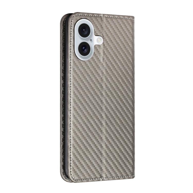 Funda de cuero con tapa magnética y textura de fibra de carbono para iPhone 17 (gris)