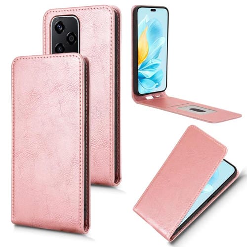 Funda de Cuero con Tapa Vertical Magnética para Honor 200 Lite 5G (Oro Rosa)