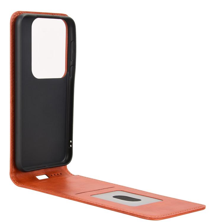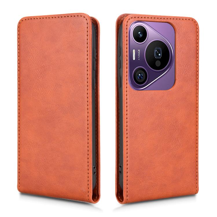 Funda de Cuero con Tapa Vertical Magnética para Huawei Pura 70 Pro 5G y 70 Pro+ 5G (Marrón)