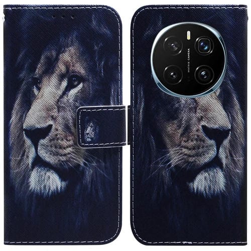 Funda de Cuero con Tapa para Honor Magic 7 Pro (León) Dibujo a Color