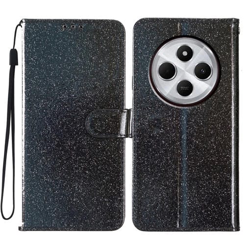 Funda de Cuero con Tapa y Purpurina para Redmi A4 5G (Negra)