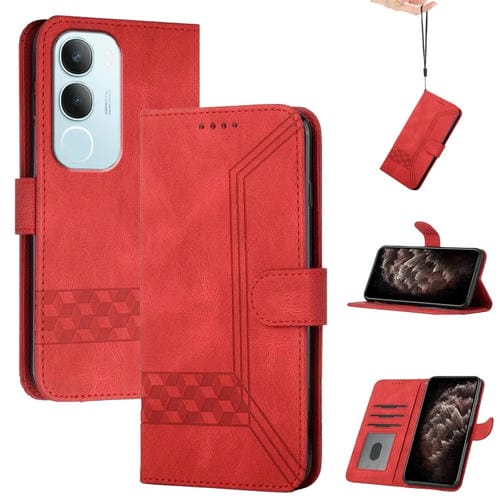 Funda de Cuero con Tapa y Tacto de Piel Cúbica Global para Vivo Y19S (Rojo)