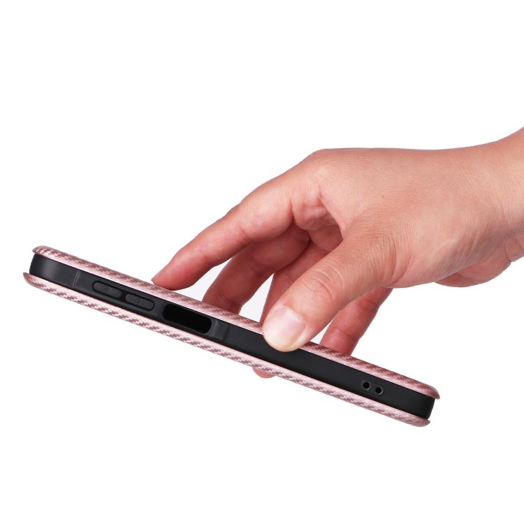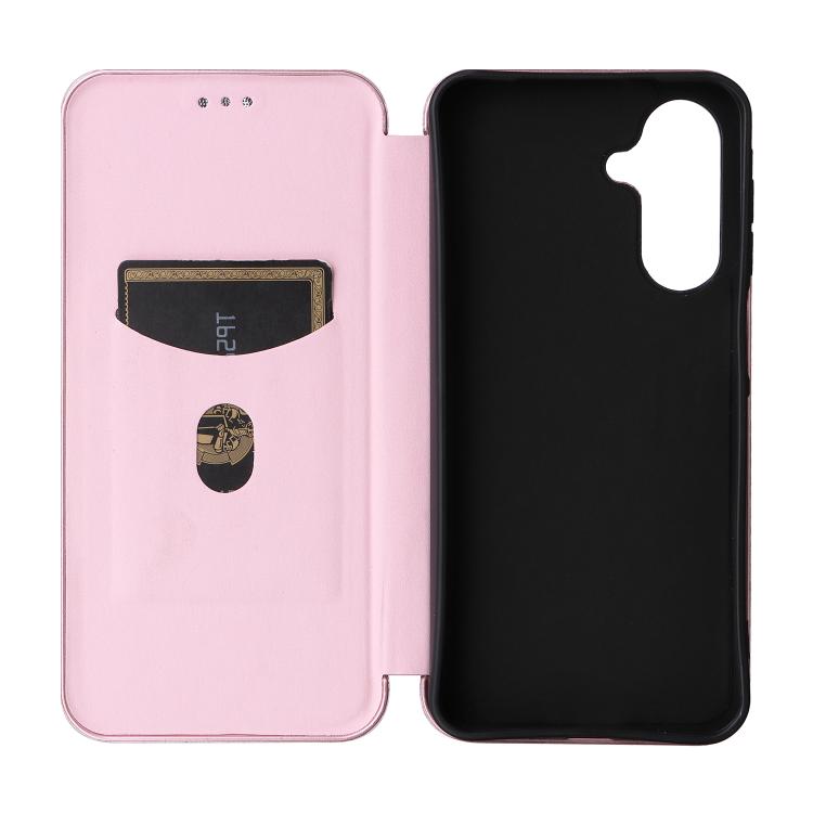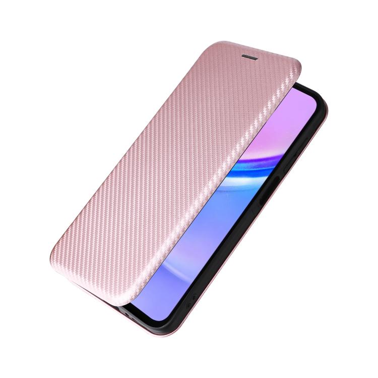 Funda de cuero con tapa y textura de fibra de carbono para Samsung Galaxy A17 5G (rosa)
