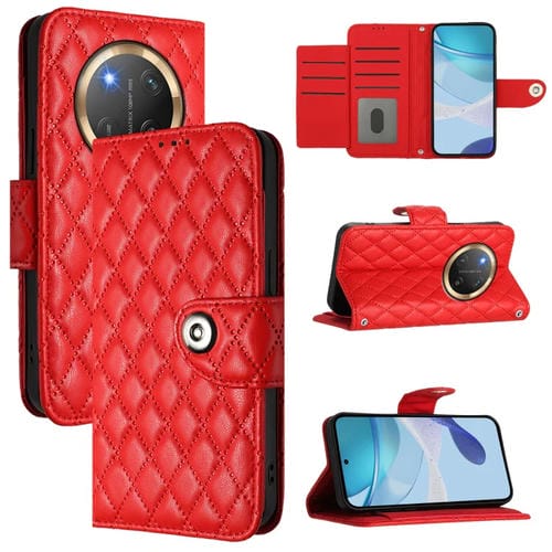 Funda de Cuero con Tapa y Cordón para Honor X9C 5G con Textura Rómbica (Roja)