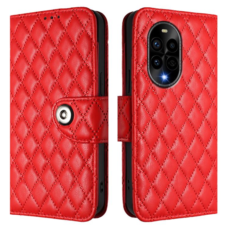 Funda de Cuero con Tapa y Textura Rombal para Huawei Nova 13 Pro con Cordón (Rojo)