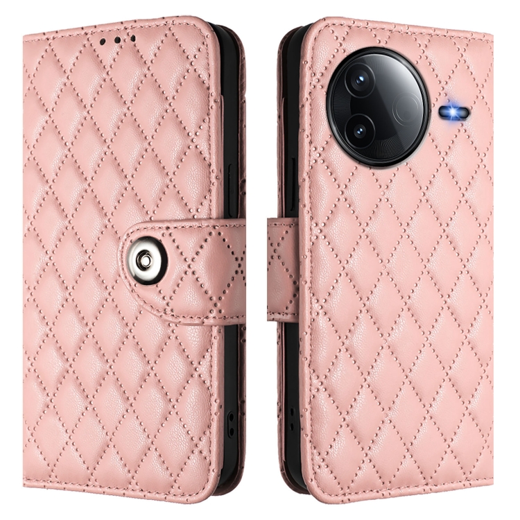 Funda de Cuero con Tapa y Textura Rómbica para Redmi K80 5G/K80 Pro 5G con Cordón (Rosa Coral)