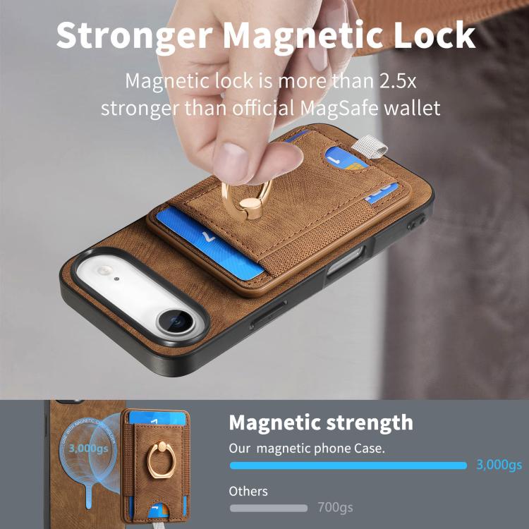 5. La cartera de cuero cuenta con potentes imanes integrados que permiten que se ajuste fácilmente a la parte trasera del teléfono, siendo fácil de usar y quitar.