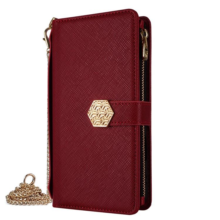 Funda de cuero con textura cruzada y asa cruzada para iPhone Air (roja)