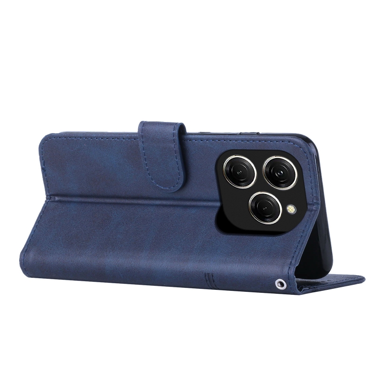 Funda de Cuero Textura Becerro con Hebilla para Tecno Spark 20 Pro 5G (Azul)