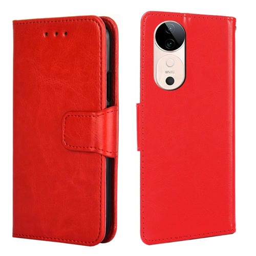 Funda de Cuero con Textura de Cristal para Teléfono Vivo S19 (Rojo)