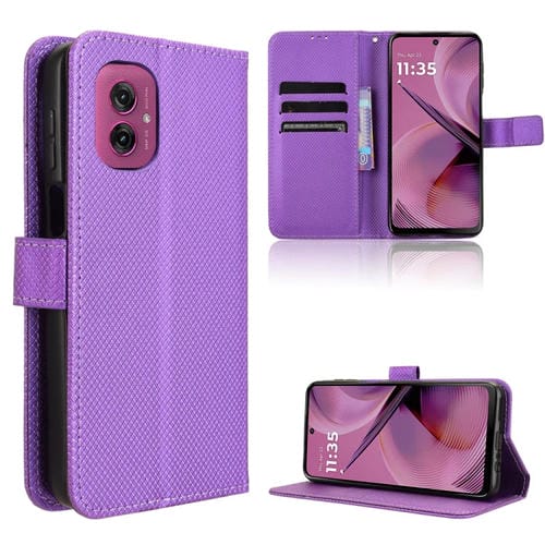 Funda de Cuero con Textura de Diamante para Motorola Moto G55 5G (Morado)