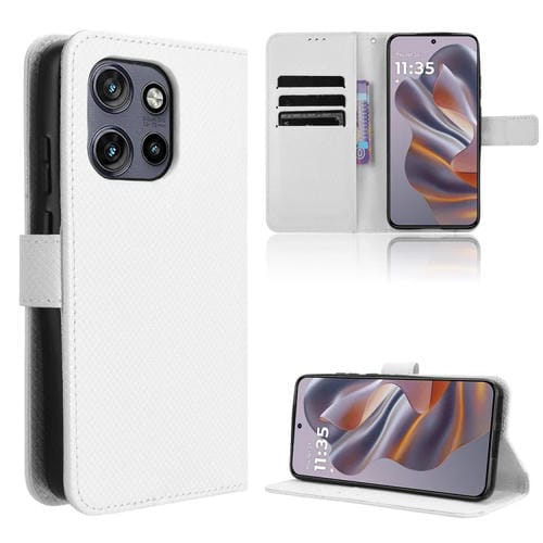 Funda de Cuero con Textura de Diamante para Motorola Moto S50 5G y Edge 50 Neo (Blanca)