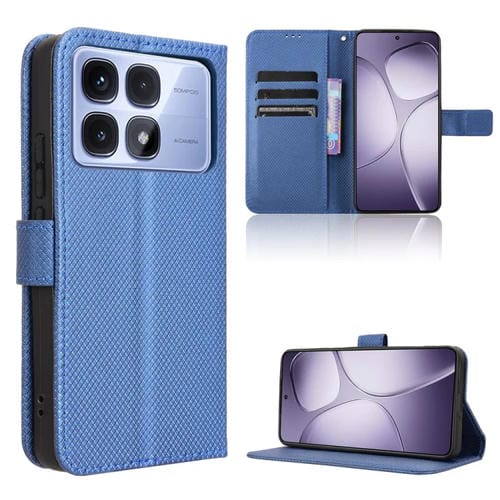 Funda de Cuero con Textura de Diamante para Redmi K70 Ultra (Azul)