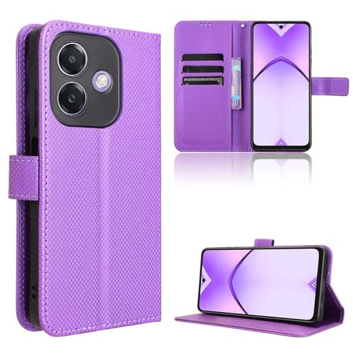 Funda de Cuero con Textura de Diamante para Oppo A3X 5G (Morado)