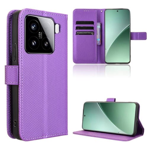 Funda De Cuero Con Textura De Diamante Para Xiaomi 15 (Morado)