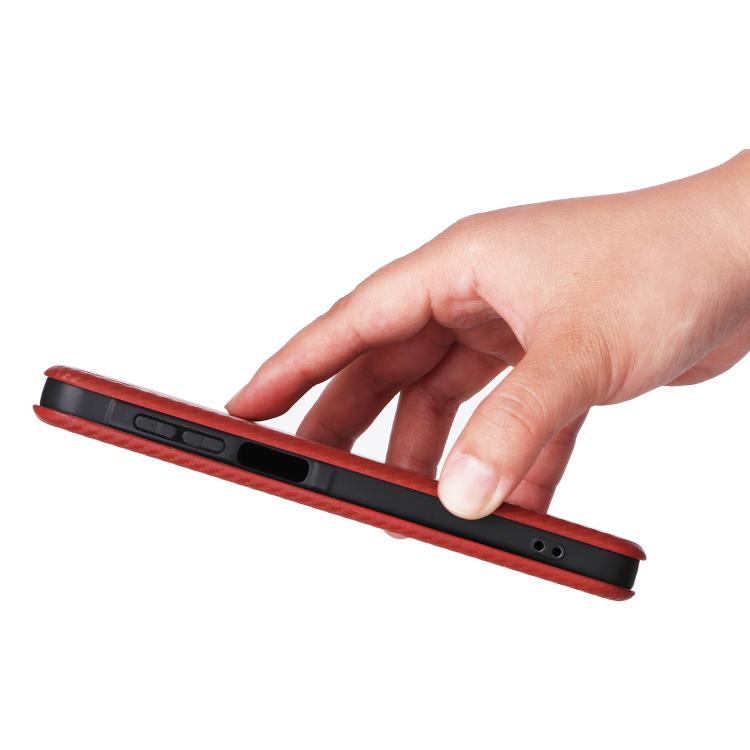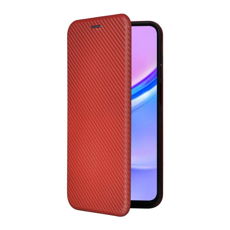 Funda de cuero con textura de fibra de carbono para Samsung Galaxy A17 5G (marrón)