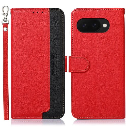 Funda de Cuero Khazneh Rfid con Textura de Lichi para Google Pixel 9A (Rojo)