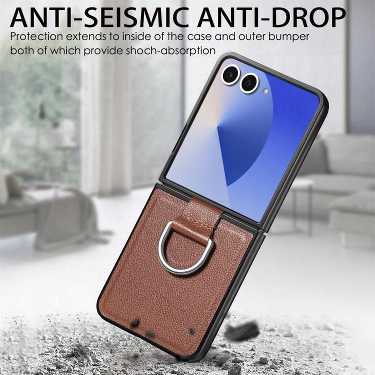 Funda de cuero con textura de lichi para Samsung Galaxy Z Flip7 5G (marrón)