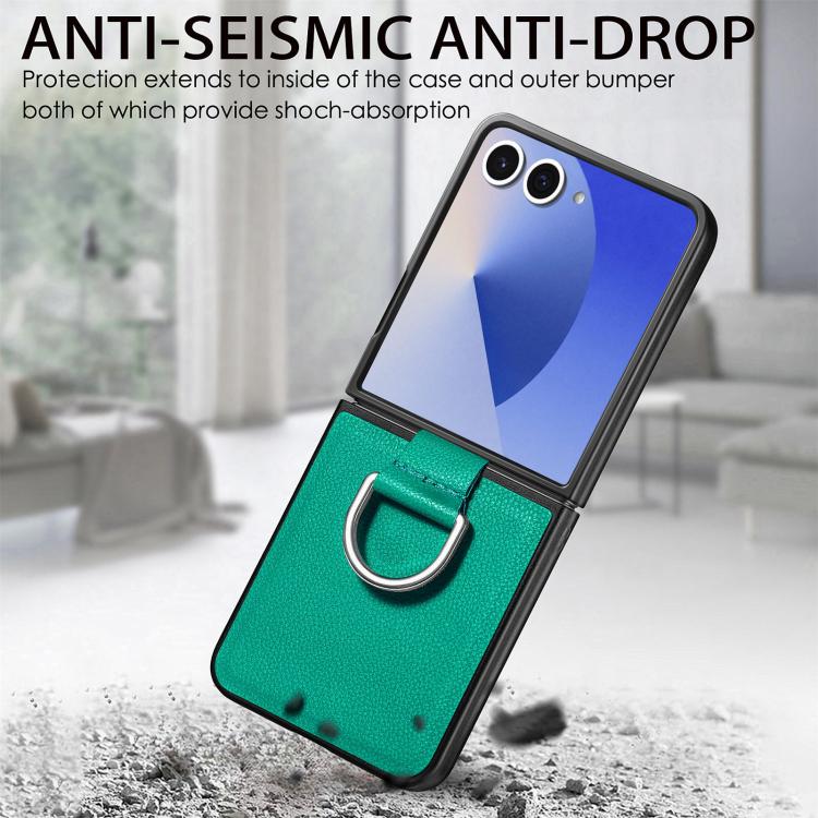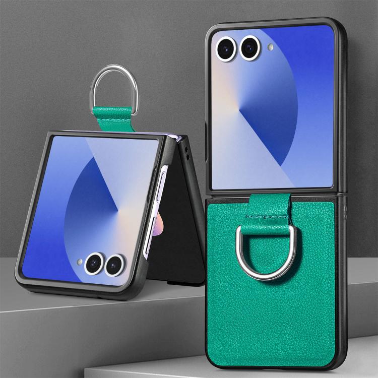 Funda de cuero con textura de lichi para Samsung Galaxy Z Flip7 5G (verde)