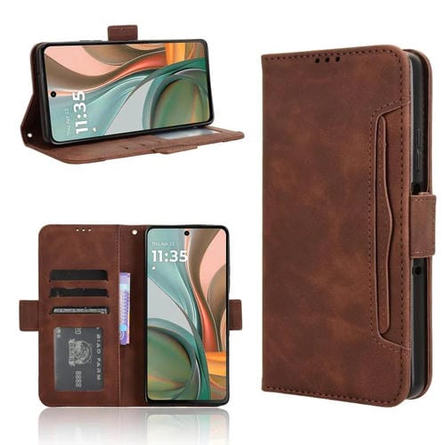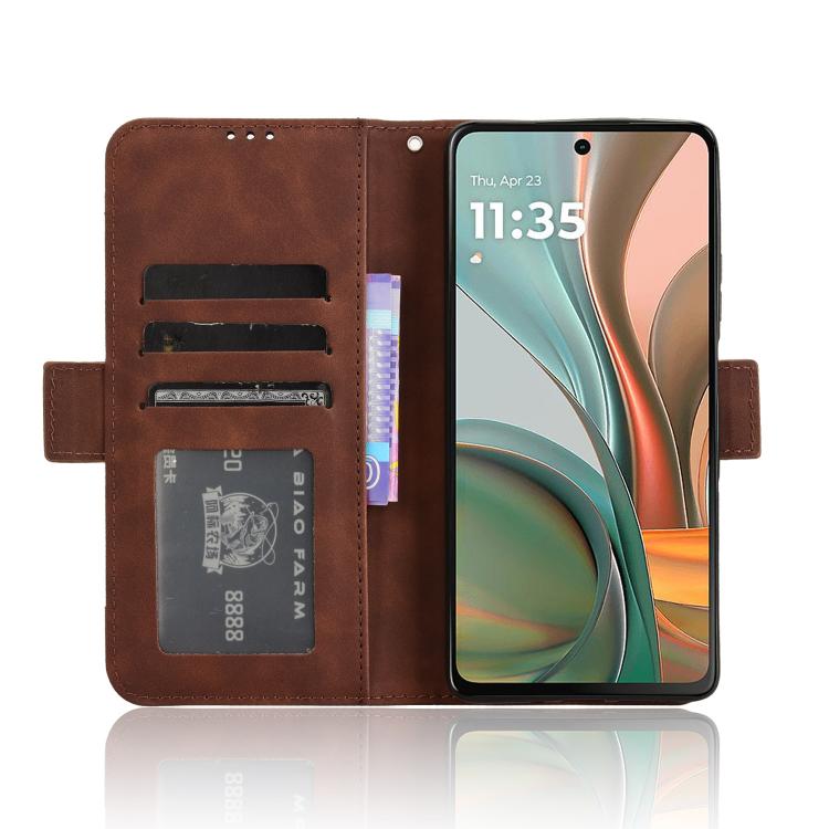 Funda de Piel Textura Becerro con Ranuras para Tarjetas para Motorola Moto G75 5G (Marrón)