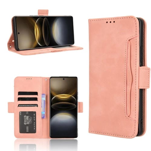 Funda de Piel con Textura de Becerro y Ranuras para Tarjetas para Vivo X100 Ultra 5G (Rosa)