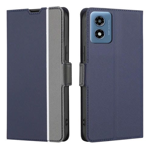 Funda de Cuero con Textura de Sarga y Botones Laterales para Motorola Moto G 5G (2024) (Azul)
