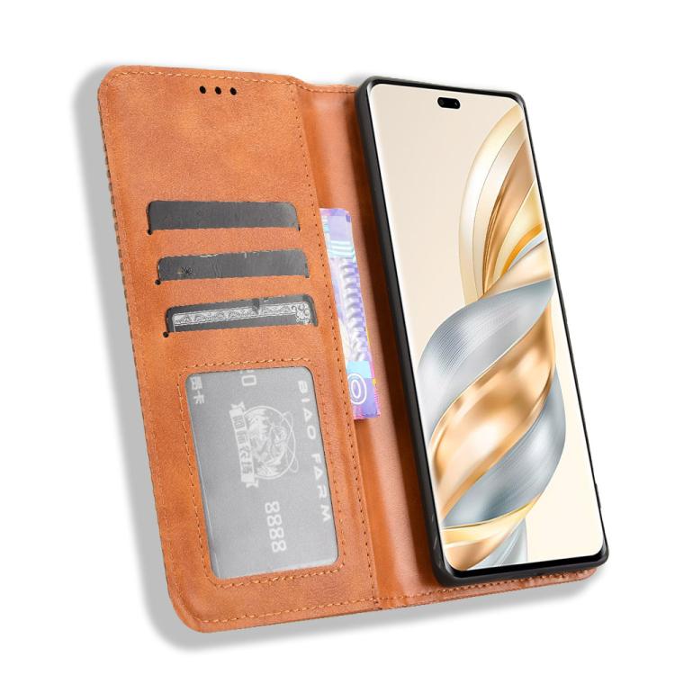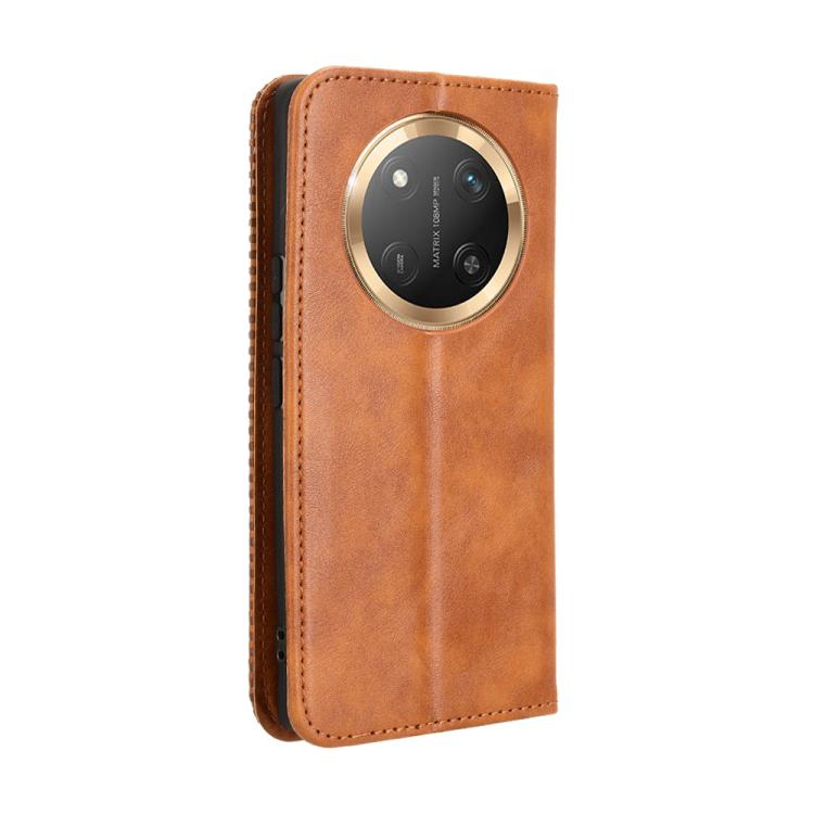Funda de Cuero Honor X60 Pro 5G y X9C 5G Textura Retro Hebilla Magnética (Marrón)