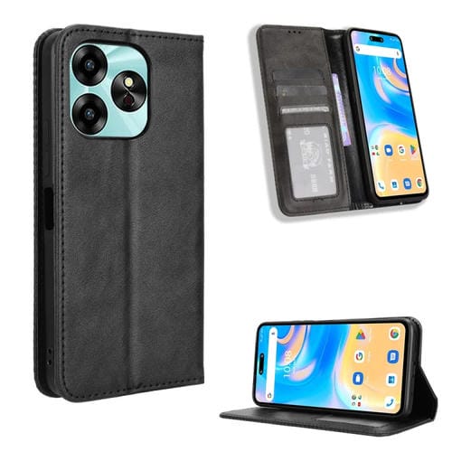 Funda de Cuero Umidigi G6 5G Textura Retro con Hebilla Magnética (Negro)
