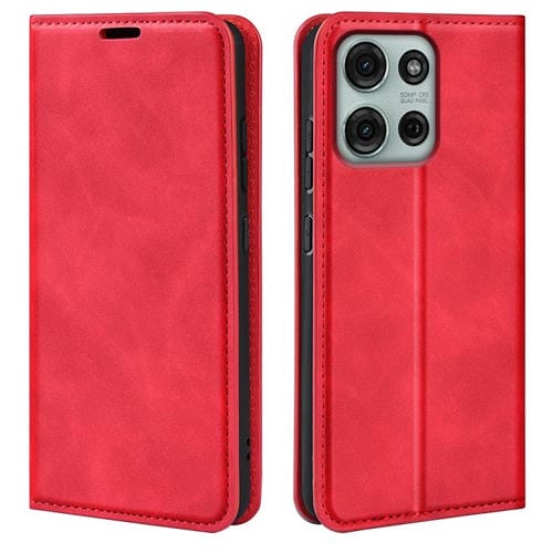 Funda de Cuero con Ventosa Magnética Motorola Moto G75 5G Retro-Skin (Rojo)
