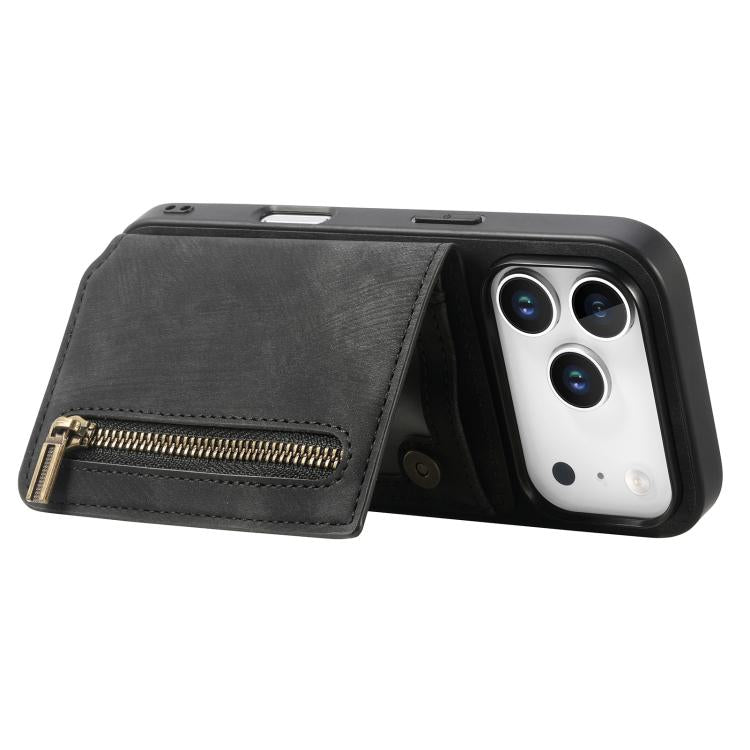 Funda de cuero estilo retro con cremallera para iPhone 17 Pro Max (negro)