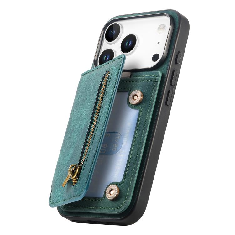 Funda de cuero estilo retro con cremallera para iPhone 17 Pro Max (verde)
