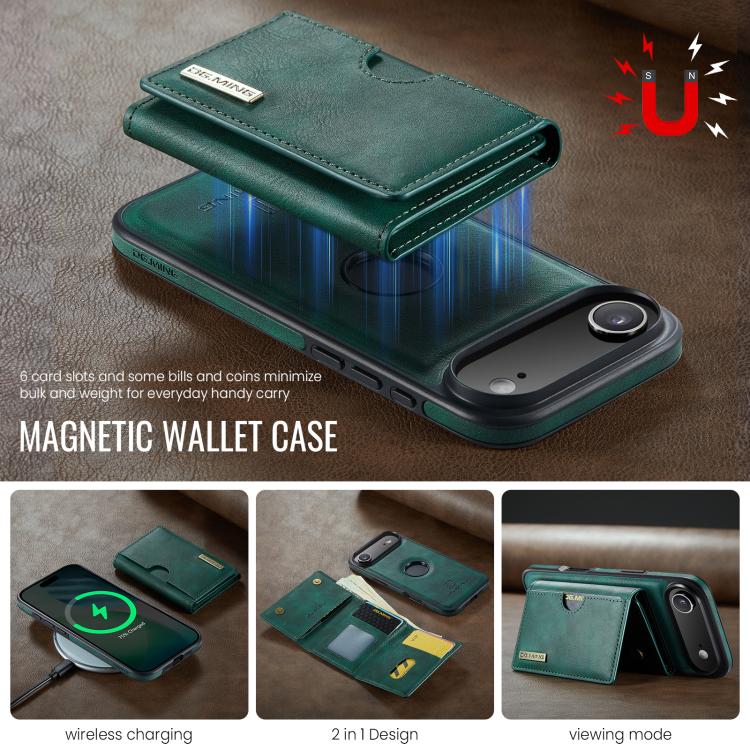 Funda de cuero extraíble con tres pliegues RFID para iPhone Air DG.MING M6 Series (verde)