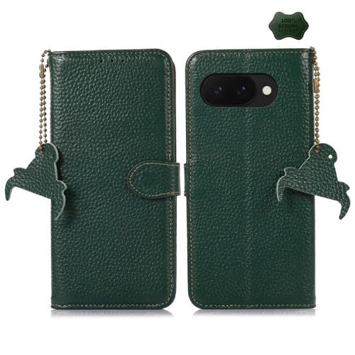 Funda de Cuero Genuino con Textura de Lichi Rfid para Google Pixel 9A (Verde)