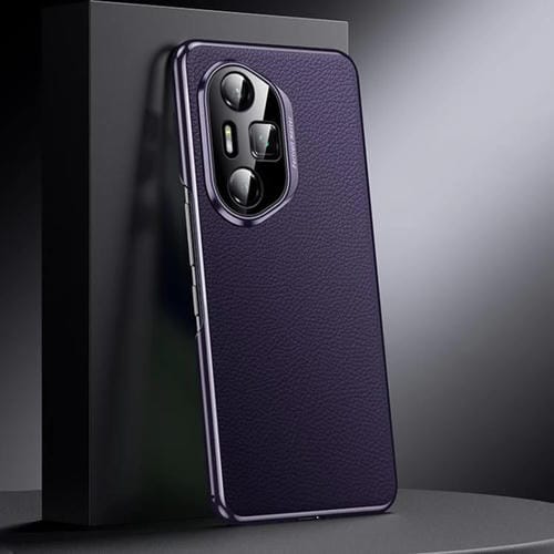 Funda de Cuero Genuino con PC para Honor 300 Ultra (Morado Oscuro)