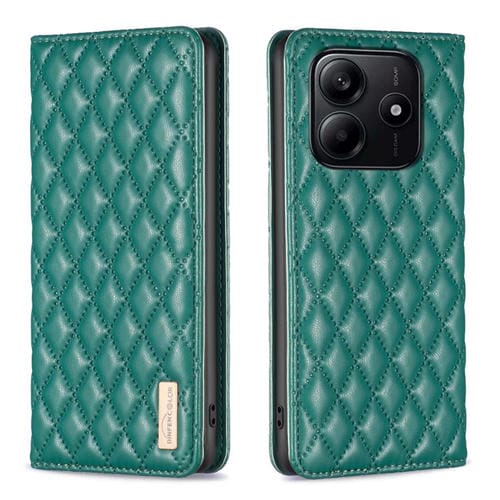 Funda de Cuero Magnética con Tapa Tipo Cartera para Redmi Note 14 4G con Diseño de Diamante (Verde)