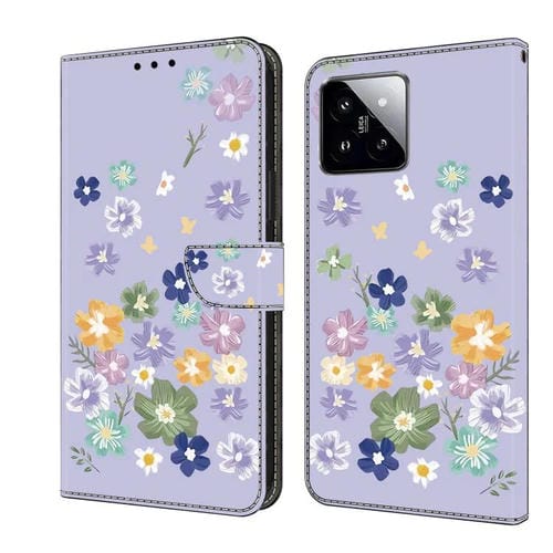 Funda de Cuero Pintada a Mano para Teléfono Xiaomi 14T Pro (Floral Morado)