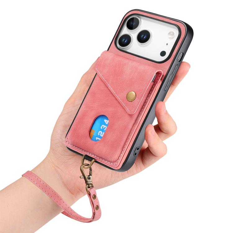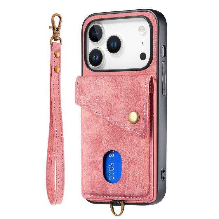 Funda de cuero plegable estilo billetera retro para iPhone 17 Pro Max con correa (rosa)