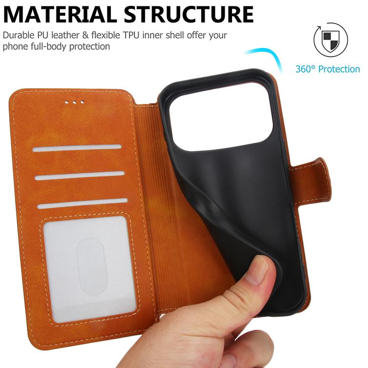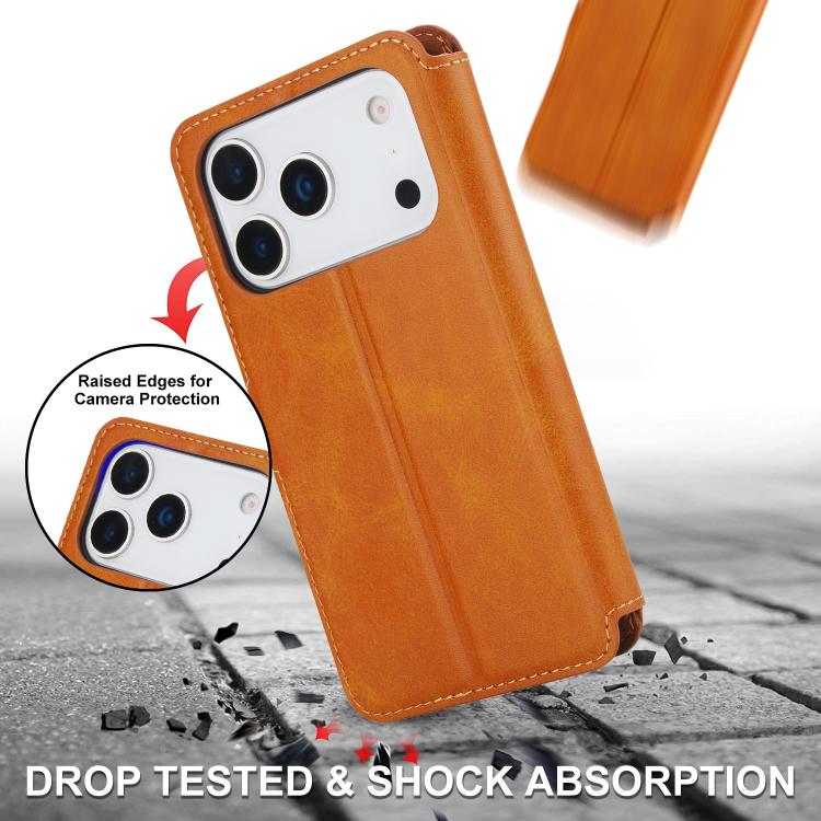 Funda de cuero PU + TPU a prueba de golpes para iPhone 17 Pro Max (marrón claro)