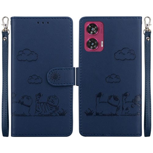 Funda de Cuero Rfid para Motorola Edge 50 Fusion con Diseño de Gatos (Azul)