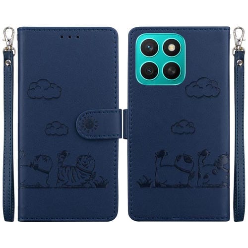 Funda de Cuero Rfid para Honor X8C 4G con Diseño de Gatos (Azul)
