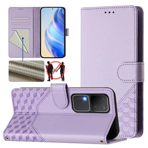 Funda de Cuero Rfid con Relieve de Panal Global para Vivo V30 5G/V30 Pro (Morado Claro)
