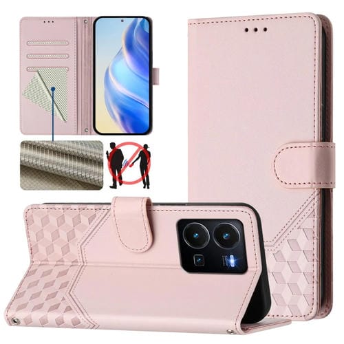Funda de Cuero Rfid con Relieve de Panal Global para Vivo Y35 4G / Y22S 4G / Y22 4G (Rosa)