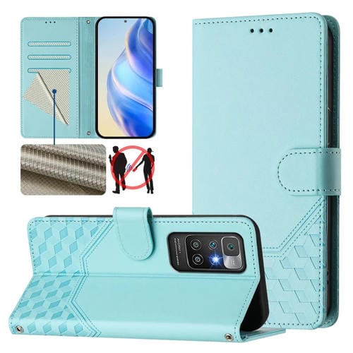 Funda de Cuero Rfid con Relieve de Panal para Redmi 10 2022/2021 (Verde Menta)