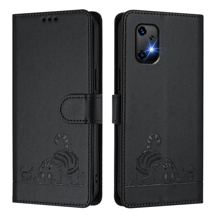 Funda de Cuero Rfid para Umidigi Bison X20 con Relieve de Rata y Gato y Cordón (Negro)