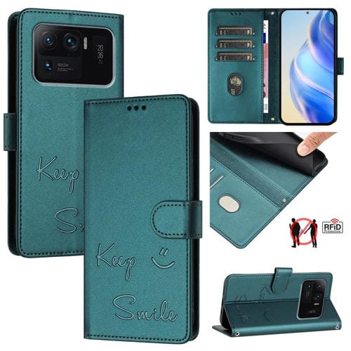 Funda de Cuero Rfid con Relieve de Sonrisa para Xiaomi Mi 11 Ultra (Verde Pavo Real)