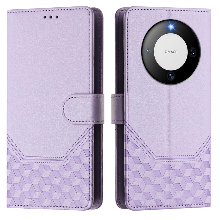 Funda de Cuero Rfid con Relieve en Panal para Huawei Mate 60 Pro y Mate 60 Pro+ (Morado Claro)