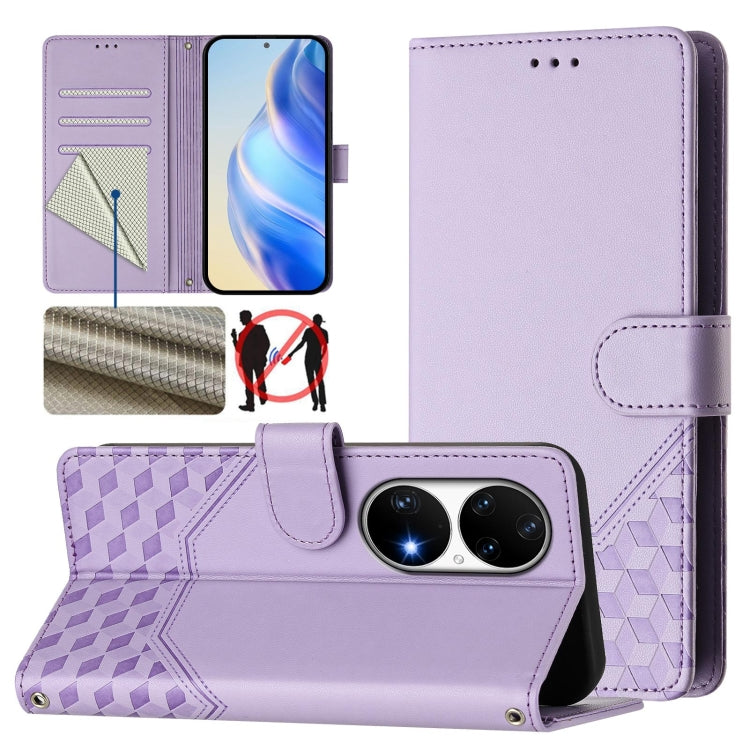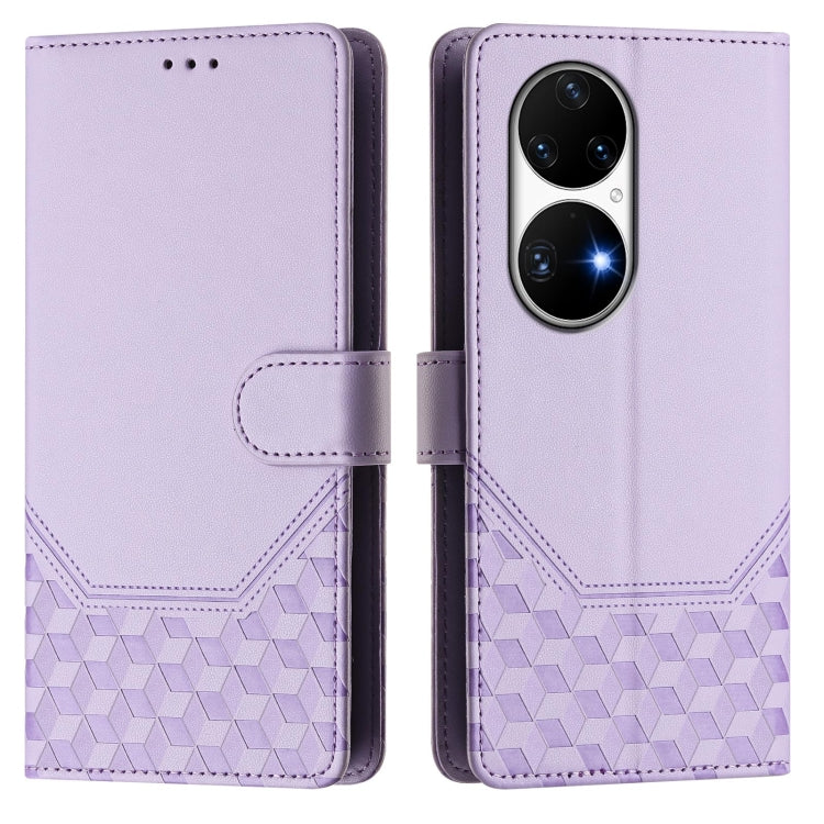 Funda de Cuero Rfid con Relieve en Panal para Huawei P50 Pro (Morado Claro)
