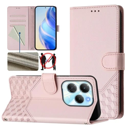Funda de Cuero Rfid con Relieve en Panal para Infinix Hot 40 4G y Hot 40 Pro 4G (Rosa)